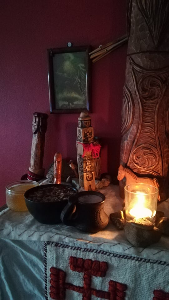 -No sacred fire was made this year, but simple offerings on the family altar, libations, prayers, songs, music. On the other hand, a project to build an open-air sanctuary has materialized and will naturally be dedicated to Perun and will begin in mid-August and will consist of an oak tree, a sacred circle, sculptures … It will be the second to be elevated, the first being dedicated to Dazbog, God of the Sun in Alsace, France.