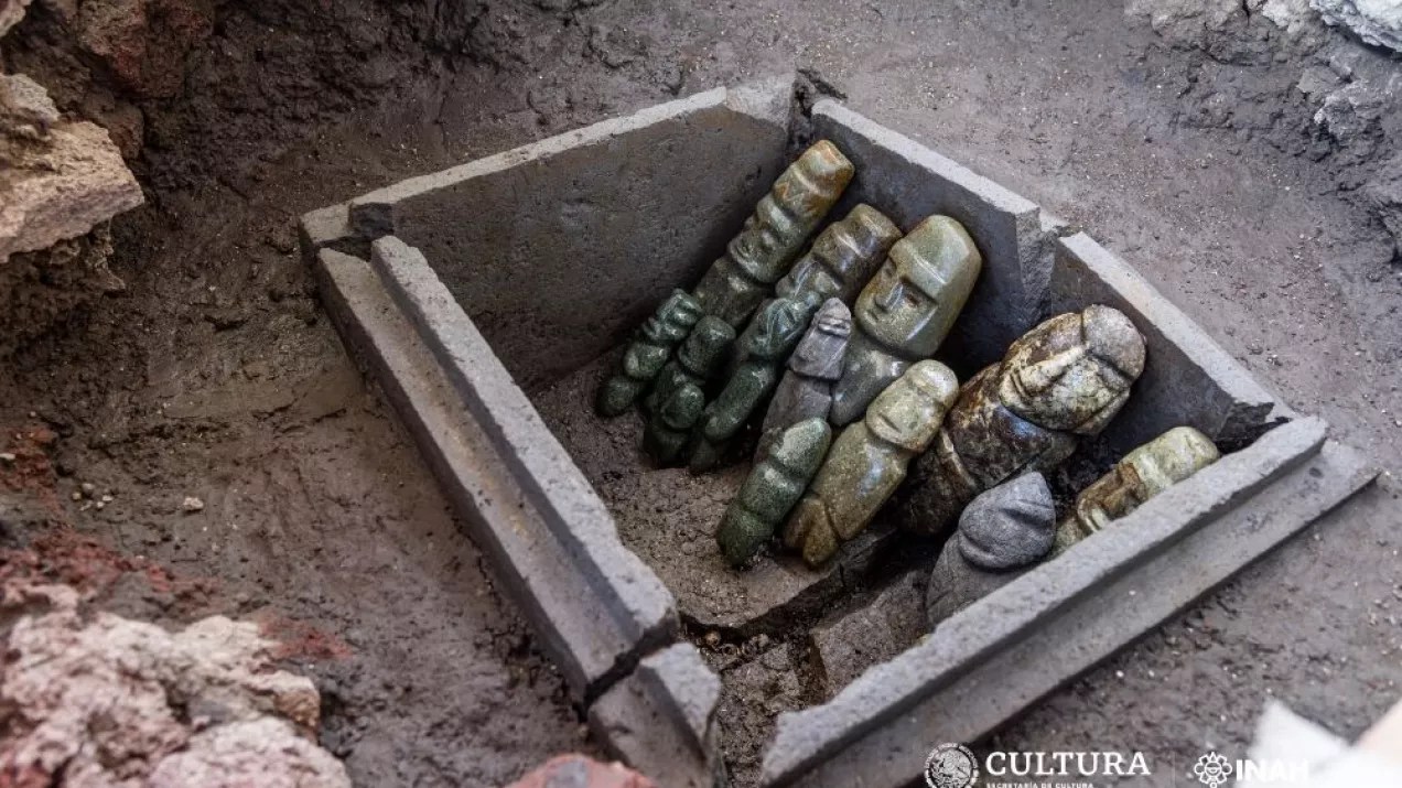 -Of the 15 statuettes, 14 of the figurines represent men, while one represents a woman. The chest also contained many beads made of green stones, shells, and other jewelry. In all likelihood, its objects looted according to archaeologists during the invasion of the people of the Mezcala culture, served as thanks to the Deities, but also to prove the greatness of the Aztec territory.