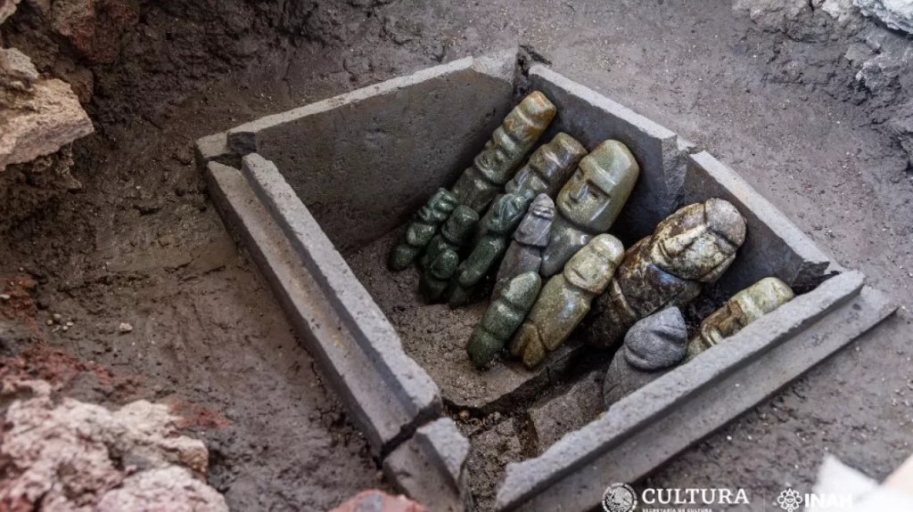 -2-Human figurines sacrificed to the Gods were found in an Aztec temple in Tenochtitlán (central Mexico). After discovering a wall of sacrificed skulls in the same place, it is the turn of these figurines to appear. This important religious center was unfortunately destroyed like everything else, during the conquest of the Spanish in 1521 (being considered a symbol of Pagan worship and therefore satanic…).