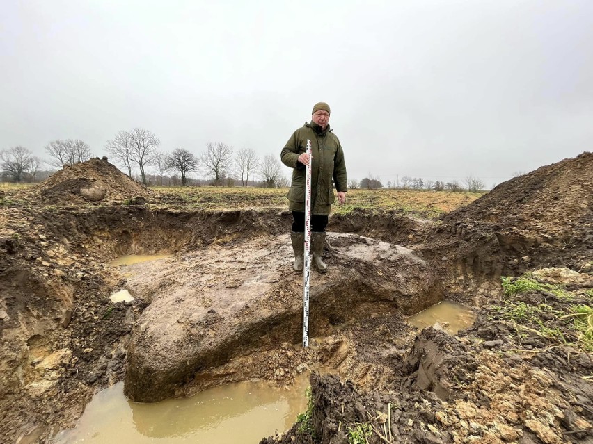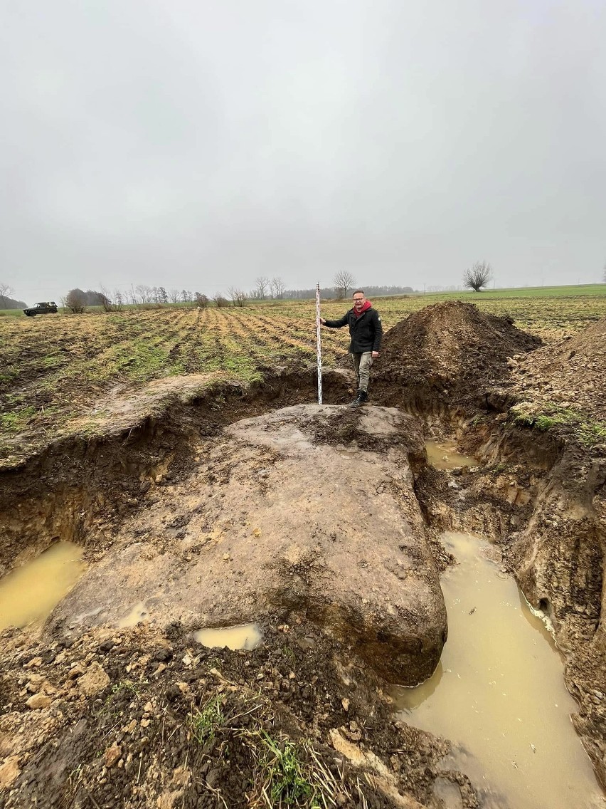 « Une chose est sûre, ce n’est pas seulement la nature qui a formé la forme de la pierre, qui se trouvait à une profondeur de 50 centimètres dans les environs de Grabów (commune de Kamień Pomorski). Sa superficie est de plus de 12 mètres carrés. »